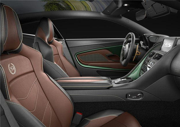 DBS 59車室裝潢也呼應車身搭配,於儀錶台、車門飾板等處用上Aston Martin Racing Green配色,配合Obsidian Black與Chestnut Tan雙色皮革組合,交織出如DBR1的車室配色,椅背上則印有「59」字樣,彰顯獨特紀念身份。購買DBS 59的買家,還會另外獲得特製安全帽、賽車服,以及專屬皮革頭盔吊帶,讓駕駛於車內更有歷史沉浸感。